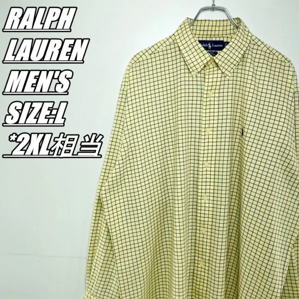 【US古着】RALPH LAUREN ラルフローレン BLAKE 長袖チェックシャツ メンズ サイズ表記L 2XL相当 イエロー×グリーン×ブラウン